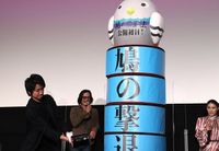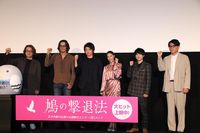 直木賞作家である佐藤正午の同名ベストセラー小説を映画化した『鳩の撃退法』の初日舞台挨拶が8月27日に新宿ピカデリーで開催され、藤原竜也、土屋太鳳、風間俊介、豊川悦司、タカハタ秀太監督、サプライズゲストとして主題歌を担当したKIRINJIの堀込高樹が登壇。映画のタイトルにちなみ、キャスト陣が超特大の特製“鳩落とし”にチャレンジして会場を盛り上げた。
