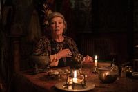 エルヴィラのヘアスタイルは、きれいな波型が特徴的なマルセルウェーブ (C)BLITHE SPIRIT PRODUCTIONS LTD 2020
