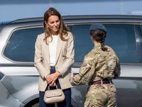 キャサリン妃、夏休み明けの初公務はオール英国ブランドで英軍基地を訪問