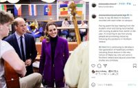 「Hello!」などによれば、この日キャサリン妃が着ていたのは、キャラメルカラーのポニーテールが映える、ヴィヴィッドなパープルのパンツスーツで、エミリア・ウィックステッドの2021年の秋冬の新作。タートルネックのセーターに、クラッチバッグ使いのイエーガーのゴールドチェーンバッグ、スウェードのエミー・ロンドンのパンプスとサファイアの指輪はネイビーカラーで、パープルのスーツとツートンカラーで統一した。Liv Thurlwellのゴールドのフープイヤリングは使い回しながら、1日前とは打って変わったハンサムながら斬新でエレガントな装いに、「なにを着ても似合う」「スーツ姿でもため息が出る美しさ」「エレガントで素敵」といった声が寄せられている。