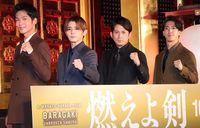 司馬遼太郎の国民的ベストセラー歴史小説を映画化した『燃えよ剣』(10月15日公開)の公開直前イベントが10月7日に上野東照宮で開催され、岡田准一、山田涼介、尾上右近、松下洸平が登壇。岡田が本作の撮影で花粉症デビューしたことを明かした。