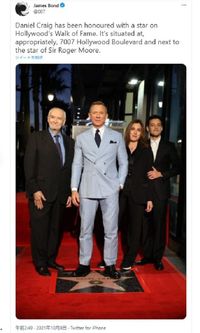 『007/ノー・タイム・トゥ・ダイ』(公開中)の全米公開を目前に、6代目ジェームズ・ボンドを演じているダニエル・クレイグが、ボンド役としては3代目のロジャー・ムーア、5代目のピアース・ブロスナンに続いて3人目となるハリウッドの殿堂入りを果たし、ロサンゼルスのハリウッド大通り7007番地に、歴代2704人目となる星形プレートが刻まれた。