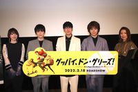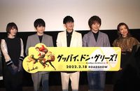 開催中の第34回東京国際映画祭「ジャパニーズ・アニメーション」部門上映作品『グッバイ、ドン・グリーズ!』の舞台挨拶が11月5日に角川シネマ有楽町で開催され、花江夏樹(ロウマ役)、梶裕貴(トト役)、村瀬歩(ドロップ役)、花澤香菜(チボリ役)、いしづかあつこ監督が登壇。チーム“ドン・グリーズ”のメンバーとして濃厚な掛け合いを演じた花江、梶、村瀬が「リズムを合わせた」というアフレコを楽しそうに振り返った。