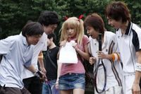 男たちに囲まれ大ピンチに? [c]2009「ユリア100式」製作委員会