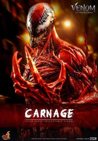細かな特徴が多く、フィギュアにするのが大変そうな造形のシンビオート。ホットトイズの「【ムービー・マスターピース】『ヴェノム:レット・ゼア・ビー・カーネイジ』1/6スケールフィギュア カーネイジ[ボーナスアクセサリー付き]」は、今作でスポットが当てられているカーネイジという名のシンビオートを立体化している。