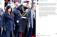 この時もヘンリー王子はグレーのスーツ、メーガン妃は黒いアルマーニのVネックワンピースの胸元に、赤いポピーのバッジを付けていた。黒服と赤いポピーは、英国のリメンバランス・デーに着用する装いであるうえに、ヘンリー王子は「10年間、軍に所属した経験により私という人間が形成されました」と、英国で軍人として貢献したことについて改めて言及。「The Sun」などは、「夫妻は、英王室を離脱した際に、『奉仕は世界中どこでもできる』と言い放ったことを、英王室に向けてアピールしているようだ」と伝えており、「アメリカで、黒服にポピーでロイヤル&愛国心のアピール?」「英王室がメディアを賑わす時期に、ウィリアム王子とキャサリン妃に対抗しているようだ」「英国では、常にエリザベス女王、チャールズ皇太子夫妻、ウィリアム王子夫妻の陰で目立たないのが耐えられないのでしょう」といった声も寄せられている。