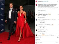 メーガン妃、肌見せ赤ドレス&脚組み黒コーデは自信の表れ?