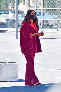 ヘンリー王子と共に、現地時間11日の米国のベテランズ・デー(退役軍人の日)前日に、ニューヨークのイントレピッド海上航空宇宙博物館で開催された式典に参加したメーガン妃。この日は、胸元が大きく開いた赤いキャロリーナ・へレラのドレスを着用していたが、9日に「New York Times」の金融ニュースサービス20周年を記念して行われた、NYT Dealbookのトークイベントに登場した際には、半袖のカシミアセーターとワイドパンツ、ピンヒールとオールブラックの装いで、胸元には赤いポピーを着けていた。