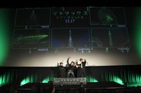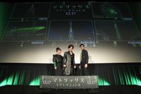 今回のイベントの目玉となったのは、“日本マトリックス化”として全国5都市のランドマークを「マトリックス」を象徴するグリーンに染める点灯式。その合図としてスクリーンに映しだされたのはリーブスから日本だけに向けられたコメント映像。「日本の僕の友人たちへ、日本をグリーンに染めるよ」と語りかけるリーブスの合図に合わせて、東京タワーやOSAKA WHEEL、名古屋のオアシス21、札幌のさっぽろテレビ塔、福岡タワーが一斉にグリーンに。