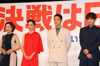 12月13日、東京・イイノホールにて、『決戦は日曜日』(2022年1月7日公開)の完成披露試写会が開催され、窪田正孝、宮沢りえ 、赤楚衛二、内田慈、小市慢太郎、音尾琢真、坂下雄一郎監督が登壇した。