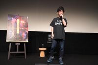 思い出に残るシーンはたくさんあるとしながらも、個人的に好きなのは「“私”と“黒服”がグラサンをかけて廊下を歩くだけのシーン」と回答。「何度観てもニヤニヤしちゃいます。残念ながら予告には入れてもらえませんでしたが」と残念がる場面もあった。作中では「目線」がポイントになっていると感じたという感想には「僕にとって“見る”という行為は特別です」と強調し、量子力学を例にあげ、眼差しや視線、目線の持つ意味などを解説しつつ、「余白を残したので、いろいろと感じ取ってほしいです」と伝えていた。