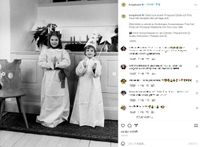 エステル王女も白と赤の衣装を着ていることからクリスマスカード用の公式写真と思いきや、「Hello!」などによれば、これは家族が住むハーガ宮殿で撮影されたもので、毎年恒例で12月13日に行われる聖ルチア聖人祭を祝うもの。1984年に撮影された、同イベントの様子を捉えたヴィクトリア皇太子、カール・フィリップ王子、マデレーン王女のレアなモノクロ写真も投稿されている。