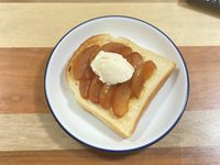 ・焼いた食パンに有塩バターを塗り、できあがったりんご煮をのせる