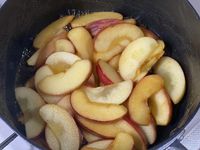 ・りんご全体的にキャラメルと絡めたら蓋をして、時々木べらで返しながら30分ほど煮込む