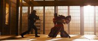 全体主義国家となった英国で孤高の戦士が暗躍する『Vフォー・ヴェンデッタ』(05)もまた、『マトリックス』を彷彿させるディストピア×アクションの一つ。シリーズを監督したウォシャウスキーの2人が製作&脚本を務め、エージェント・スミス役でブレイクしたヒューゴ・ウィーヴィングが、顔出しなしで仮面の主人公Vを好演している。時間軸を自由に伸縮するアクションや、銃ではなく短剣を使う戦法も話題を呼んだ。