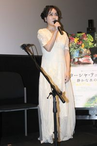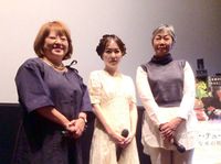 アメリカの人気絵本作家で“スローライフの母”として愛されたターシャ・テューダーのドキュメンタリー『ターシャ・テューダー 静かな水の物語』の初日舞台挨拶が、4月15日に角川シネマ有楽町で開催。劇中の音楽を担当したsione(aka 湯川潮音)が弾き語りライブ演奏を行った後、松谷光絵監督と鈴木ゆかりプロデューサーがターシャ・テューダーとの撮影秘話を語った。