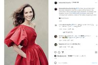 2枚目の、パフスリーブとポケットが現代風の赤いワンショルダードレスは、まるでハリウッドスターのような装いだが、ダイヤモンドのイヤリングはエリザベス女王から借り受けたもので、しっかり伝統を継承。