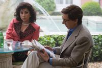 そのころのグッチ家に登場した一人の女性、パトリツィアは、そんな煌びやかさに目が眩んだに違いない。時代の背景とも相まって、彼女は一族とGUCCIブランドに多大な影響を与えていくのだが、物語のターニングポイントとなる重要な場面でも、ブランドの象徴であるロゴが散りばめられたルックを着用しているのだ。サブリミナル効果のようにGUCCIというブランドが印象付けられる仕掛けになっているので、ぜひ注目してほしい。