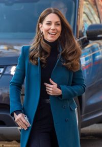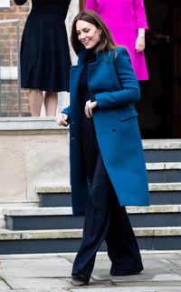 ツートンカラーやワーキングマザーを意識したパンツルックが、2021年から鉄板のキャサリン妃。今回のファッションは、袖元にある3つの金ボタンが特徴的な、ネイビーのホッブスロンドンのタートルネックセーターにジグソーのパンツ、エミーロンドンのスウェードのパンプス、ジグソーのロイヤルブルーのコートという装い。同色系のツートンカラーにまとめており、ウィリアム王子ともさりげなくコーデ。控えめながらスキンシップも見せており、最強タッグぶりが感じられた。