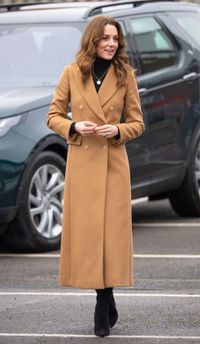 「Daily Mail」などによれば、ウィリアム王子はバーガンディのセーター、キャサリン妃は茶色のアイリス&インクのタートルネックとスカートの上下に、キャメルのマッシモ・ドゥッティのダブルのコートとサンローランのスウェードブーツという装い。2021年2月にも身に着けていた、ミッソマのミニピラミッドフープピアスでさりげなくウィリアム王子のセーターとコーデしており、今回も同系色のツートンカラーの洗練されたシックな装いが絶賛されている。