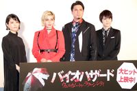 全世界でシリーズ累計売上数1億1700万本を突破した人気ゲームから生まれたサバイバル・アクション映画「バイオハザード」シリーズ。その原点を描く『バイオハザード:ウェルカム・トゥ・ラクーンシティ』の初日舞台挨拶イベントが1月28日にTOHOシネマズ六本木ヒルズで開催され、日本語吹替え版声優のファイルーズあい(クレア・レッドフィールド役)、木村昴(クリス・レッドフィールド役)、沢城みゆき(ジル・バレンタイン役)、梶裕貴(レオン・S・ケネディ役)が登壇。生アフレコやタイトルコールをどれだけ怖く言えるかの選手権を行うなど、豪華声優陣がサービスたっぷりのトークで会場を盛り上げた。