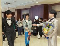 大九監督の言葉通り、余興シーンの撮影はまさにお祭りのような賑わいぶり。天井ギリギリまで上がるクレーンも含め、用意されたカメラは3台。会場が暗くなり、会場の中央に置かれた和太鼓をクレーンカメラがとらえ、別のカメラはステージ上とフロア全体を狙う。まさに本当の結婚式の余興のように楽しげな空気と、適度な緊張感が漂うなかで約4分間の長回しシーンをキャストたちが一体となって演じる。次第に会場のボルテージは最高潮へと達し、大九監督の「OK」がでると満場の大喝采が巻き起こった。