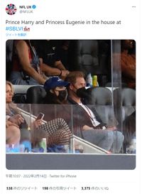 現地時間2月13日、ヘンリー王子が従妹のユージェニー王女と共に、ロサンゼルス、イングルウッドのSoFiスタジアムで行われた第56回NFLスーパーボウルを観戦しているところを「People」などにパパラッチされている。