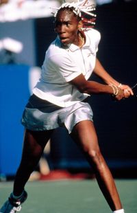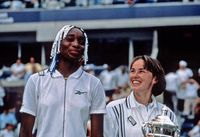 1997年の全米オープンで世界ランキング66位から決勝進出を果たしたビーナス。同い年の天才少女、マルチナ・ヒンギスに敗れるもダイナミックなプレーは圧巻だった 写真:EVERETT/アフロ