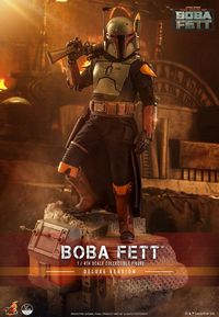 惑星タトゥイーンで怪物サルラックに飲み込まれたものの生還し、犯罪王であるジャバ・ザ・ハットの宮殿を訪れ、かつてのジャバの側近ビブ・フォーチュナを殺して王座の支配者となった伝説の賞金稼ぎ、ボバ・フェット。そんな物語の主人公を、王座の間をイメージしたジオラマ台座付きでフィギュア化した「【クオーター・スケール】『ボバ・フェット/The Book of Boba Fett』1/4スケールフィギュア ボバ・フェット[ボーナスアクセサリー付き]」からチェック。