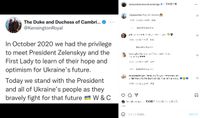 ウィリアム王子夫妻、公式SNSで異例の意志表明!ウクライナ支持を公表