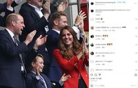 キャサリン妃は、昨年6月にUEFAユーロ2020(欧州選手権)のイングランド代表対ドイツ代表の試合を観戦した際に着ていた、金ボタンが華やかなザラの赤いブレザーとME+EMのフリルの白いブラウス、黒いパンツにジャンヴィト・ロッシのパンプス、黒いアスピナル・オブ・ロンドンのハンドバッグに、デンマーク発マリア・ブラックのパールのイヤリングとモニカ・ヴィナダーのネックレスという装いでデンマーク入り。デンマークブランドと、赤と白というデンマークの国旗色の装いで、これまで通り、訪問国に敬意を表した。