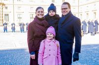 また、その後公開されたのは、ヘアバンドを着け、スタンドカラーの小花柄ワンピース姿のエステル王女が、祖父のカール16世グスタフ国王とシルヴィア王妃の間に座っている写真だった。