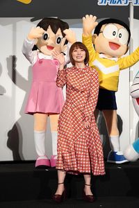 また本作では「かべ紙秘密基地」という、壁に貼るだけでそのドアの向こうが秘密基地になるドラえもんの道具が活躍する。司会から「もしかべ紙秘密基地を使えるとしたら?」と聞かれると、松岡は「子どもの時にジャイアンと呼ばれていた」と明かし、「(秘密基地は)防音とかもちゃんとしていると思う。この基地のなかで一緒に歌いましょう!」とジャイアンをお誘い。「うわー!最高!」とジャイアンが大喜びするなか、松岡は「リサイタルしたいですね」と笑顔を見せていた。