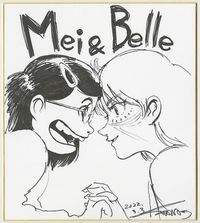 また、あわせて細田監督による、本作の主人公メイと『竜とそばかすの姫』のベルが向きあう姿を描いた直筆イラストも解禁に。『竜とそばかすの姫』の主人公すずは仮想世界“U”でベルという顔を持ち、一方で本作の主人公のメイはレッサーパンダというもう一つの顔を持つという、作品同士の共通点が見えるものとなっている。