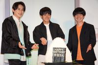 人気テレビドラマの劇場版『チェリまほ THE MOVIE 〜30歳まで童貞だと魔法使いになれるらしい〜』(4月8日公開)の完成直前イベントが3月10日にTRUNK HOTELで開催され、赤楚衛二、町田啓太、風間太樹監督が登壇。赤楚と町田がお互いの魅力を熱弁したほか、先日誕生日を迎えた赤楚に“おにぎり型”の特大ケーキが贈られた。