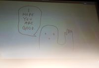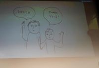 【写真を見る】音声が出ないハプニング中、直筆イラスト付きのメッセージを見せるマイク・ミルズ