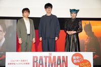 猫耳をイメージした髪型で登場したファイルーズは、「メイクさんに『キャットウーマンみたいな猫耳にしてください』と言ったんですが、鏡を見たら色がジョーカーだったんです」とバットマンの宿敵であるジョーカーのような緑の髪色だったことに苦笑い。「もう一つ、ポイントがあるんです。靴にコウモリの羽がついているんです」とファッションをアピールし、「バットマンとヒロインのセリーナとの微妙な距離感、関係性もすてきです」と笑顔を見せた。石田は「現実とフィクションのリンクがきちんとしていて、うまく練られた脚本になっているのが世界的に受けている要因のひとつではないかと。皆さん、かき回されると思います」とミステリー要素についても舌を巻いていた。