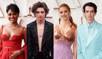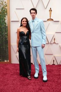 また今年は、カラフルな衣装を着こなす男性陣の姿も目立った。『パワー・オブ・ザ・ドッグ』で助演男優賞にノミネートされていたコディ・スミット=マクフィーは、タキシード&シューズなど全身アイスブルーでお目見え。ウェズリー・スナイプスはボルドーのジャケットやハーフパンツ、タイツ姿のコーデがインパクト大で、歌曲賞のパフォーマンスで優しい歌声を響かせたセバスチャン・ヤトラは淡いピンクのタキシード姿でレッドカーペットを闊歩。