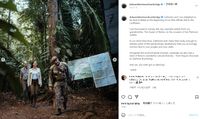 ジャングル内では、キャサリン妃はアーミーブーツに履き替え、オランダ発の若者向けブランド、スコッチ&ソーダのベージュ系のサファリジャケット(シャツのような軽量のジャケット)を羽織り、イギリス陸軍訓練支援ユニットのメンバーから、つる科の植物から水を飲むなどのサバイバル術を学んだ2人。