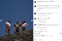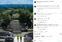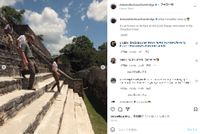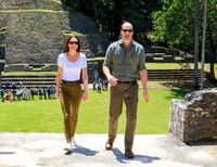 訪問時には、ブルーの国旗カラーで敬意を表したキャサリン妃。2日目にジャングルの奥深くにある同国最大級のマヤ遺跡、カラコルおよび熱帯雨林を訪問した際の装いは、オランダ発ジースター・ロゥの、グリーン系カーキのおニューのスキニージーンズ、御用達であるイギリスの百貨店チェーン、ジョン・ルイスの白いTシャツだった。またこちらもキャサリン妃の鉄板である、スペルガの白いスニーカーとSpells Of Loveのゴールドのフープイヤリングを合わせていた。一方のウィリアム王子は、オリーブカラーのシャツにグリーン系カーキのパンツ、茶の靴という装いでグリーン系のカラーコーデ。さらにお揃いの黒いレイ・バンのサングラスも着けており、仲のよさを見せつけた。