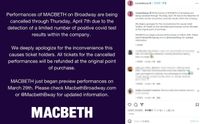 その後新たに、「限定的ではありますが劇団内でも陽性者が出たため、4月7日まで公演をキャンセルします」と発表。クレイグの症状などについては明らかにされていない。特に4月2日の昼の部は、なにも知らずに劇場に訪れた人でごった返していたほか、この公演を見るためにニューヨークを訪れていた人たちからは、仕方がないこととはいえ落胆する様子が「E!」などで伝えられている。