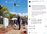またウィリアム王子は、紺のスーツに白いワイシャツ、赤いネクタイとユニオンジャックカラーの装いで、未来の国王としての愛国心を示した。一方で、ブルーはもちろんのこと、バハマの軍艦旗には国旗色のほかに赤が含まれていることから、訪問地、および軍隊への敬意も忘れなかったようだ。