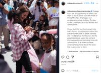 キャサリン妃は、英国の国花であるバラを彷彿とさせる、英国発リキソーのピンクのワンピースに、エミー・ロンドンのクラッチバッグ、ベージュのカスタニエールのウェッジソールサンダル、日差しが強い場所ではFINLAYのサングラスという装い。ウィリアム王子と共に、2019年にハリケーン・ドリアンによって甚大な被害を受けた、アバコ島のメモリアルや教会を訪問した。また家族と暮らせない子どもたちが暮らすChildren Home、海辺の野外料理Fusion streetfood なども訪問。