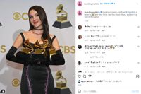 そのほか、最優秀新人賞をはじめ、3部門で受賞を果たした、オリヴィア・ロドリゴのロンググローブと、ヴィヴィアン・ウェストウッドの黒いボディタイトなクチュールドレス、デュア・リパのヴェルサーチのセクシーな黒いハーネスドレス、セイント・ヴィンセントのグッチのピンクのスパークリング&ラッフルドレスや、ヘイリ―・ビーバーのシンプルなサンローランのオフショルダードレス。