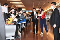 ロンドンから15時間超という長時間のフライトにも関わらず、その疲れを感じさせない爽やかな表情で到着ロビーに姿を見せたレッドメイン。到着を歓迎するかのように穏やかな春の陽気に包まれた羽田空港には、偶然居合わせたファンの姿も。レッドメインは丁寧に一人一人に手を振ると、時折歩みを止めながら声をかけ、日本語で「ありがとう」と挨拶し、ファンを喜ばせた。