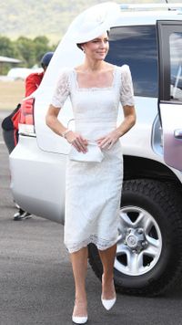 カリブ海外遊の軍事パレードで着ていた、アレキサンダー・マックイーンの白いレースドレスと、アップにまとめたヘアスタイルにフィリップ・トレーシーのファシネーターを合わせた姿が、「オードリー・ヘプバーンが演じた『マイ・フェア・レディ』のイライザ・ドゥーリトルのようだ」と報じられていたキャサリン妃。今回もシニヨンにまとめたヘアスタイルに、ロック・アンド・コーハッターズのつばが広い大ぶりな黒い帽子に、アレッサンドラ・リッチの、黒地に白い水玉模様のスタンドカラーのワンピース、故ダイアナ妃の真珠のドロップイヤリング、ラッセル・アンド・ブロムリーのベージュのクラッチバッグに、ジャンヴィト・ロッシの黒いパンプスという“マイ・フェア・レディな装い”と「Page Six」などが伝えている。