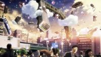 バトルクールは無人となったビルや重力異常で宙に浮かぶ車などを跳び移りながらゴールを目指す危険なレースという設定。荒木監督が手掛けた「進撃の巨人」の立体機動シーンを彷彿とさせる縦横無尽のカメラワークとスピーディな動きは、本作の大きな見どころといえる。