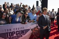 今回のプレミアは、青空からプロペラの轟音とともにトップガン仕様のヘリコプターが現れスタート。レッドカーペットのすぐそばに着陸し、サングラス姿のクルーズが登場すると、「本当に最高です。何年もロックダウンしたなかで映画の撮影を続けてきたけど、こうしてファンの皆と会えて、顔が見られるなんて、この場に立てて光栄です」とファンの声援に応えた。また、前作で悲しい死を遂げたマーヴェリックの親友グースの息子ルースターを演じるマイルズ・テラーや、ヒロイン、ペニーを演じるジェニファー・コネリー、コシンスキー監督や、製作のブラッカイマー、脚本のマッカリーら豪華な顔ぶれが勢ぞろいし、公開が近づく作品への想いを語った。