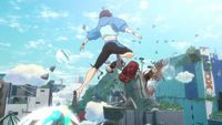『バブル』の舞台となる重力が壊れた東京は、巨大な泡に包まれ、空中には泡や岩、壊れた列車の車両が浮かんでいる。映画の前半は、その異世界の東京で、ヒビキらのチームと相手チームがハイスピードで激突するバトルクールが大きな見どころになっている。