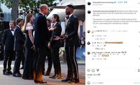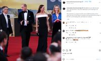 ベルベットのタキシード姿に飛行機の刺繍が施されたローファーと、同作をサポートしているウィリアム王子と、モノトーンコーデでレッドカーペットを歩いたが、タキシード姿のトムは、数段の階段でもすかさずキャサリン妃の手を取りエスコート。またキャサリン妃につきっきりでほかのキャスト、ジェニファー・コネリー、ジョン・ハム、マイルズ・テラーなどを紹介する様子が「Daily Mail」などに掲載されている。